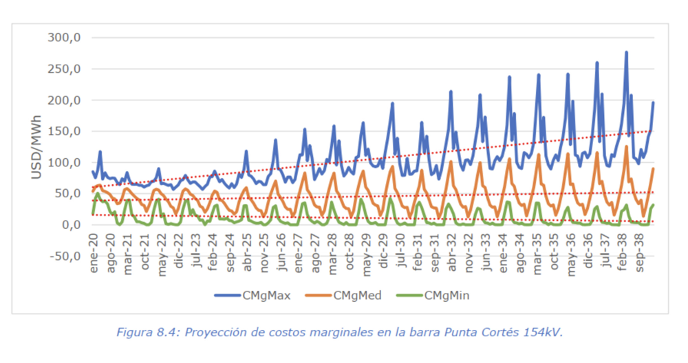Potencia, Precios Estabilizados por bloque y Costos Marginales para diferentes barras de interés. Para lo anterior, se utilizó el software de optimización PLEXO simulando la operación del Sistema Eléctrico Nacional bajo diferentes escenario de demanda, de hidrologías y de penetración de energías renovables y sistemas de almacenamiento de energía.